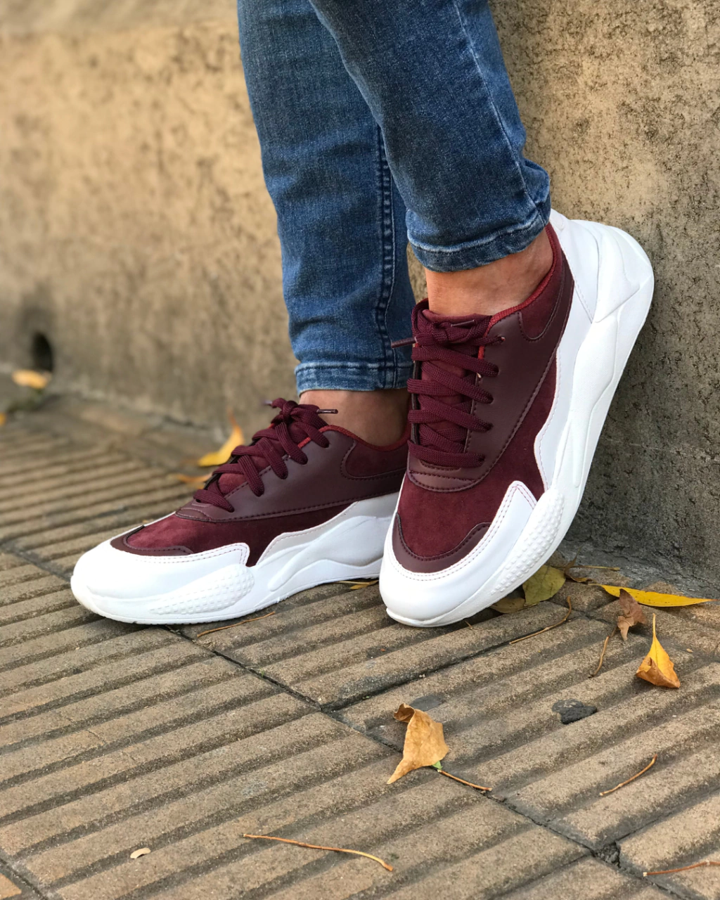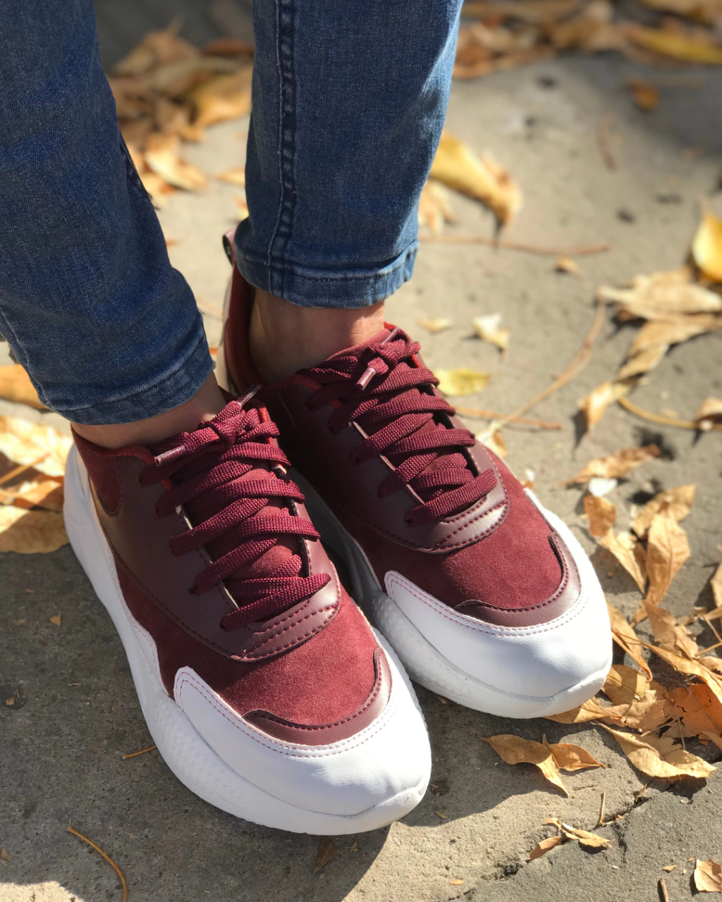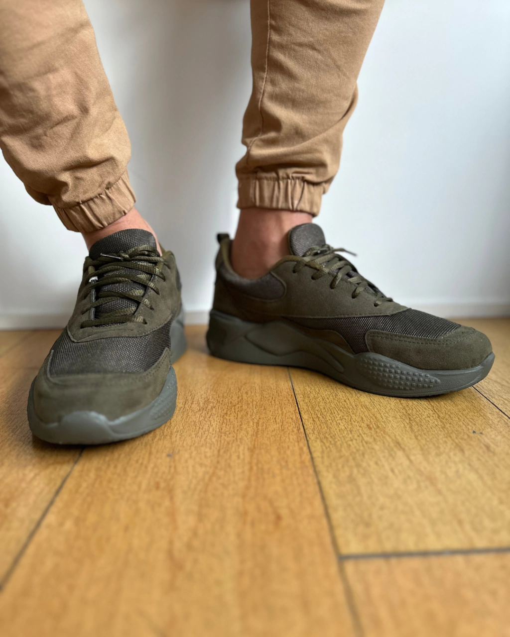 Capellada compuesta de PU (cuero ecologico) combinada con tela.